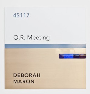 這款會議室標識牌的設計很新穎,就好像簡潔的名片一樣整潔、形象,這樣的設計很好,采用的色彩顏色很少,也比較淡淺,足夠體現高端企業的形象理念,標識的設計給人一種很不錯的視覺感。