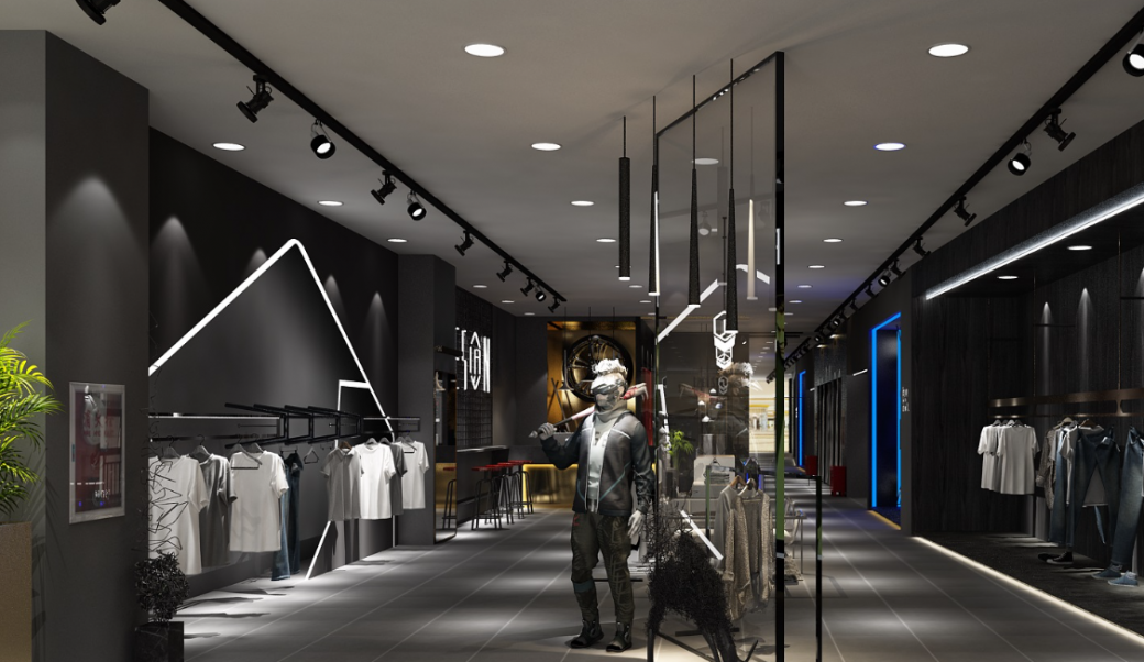 服裝品牌設(shè)計的創(chuàng)意店面設(shè)計。品牌開始的部分讓服裝更顯魅力。
